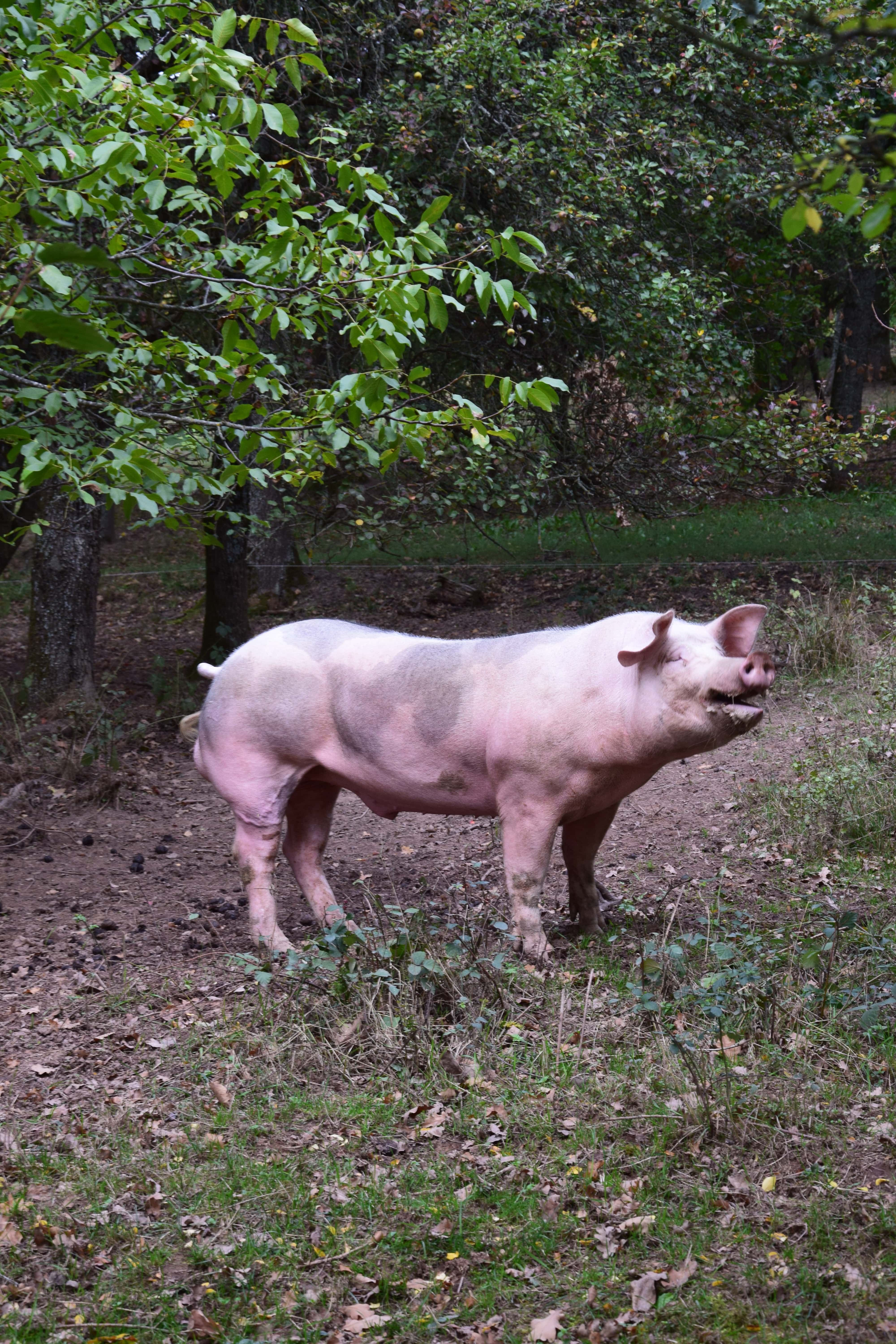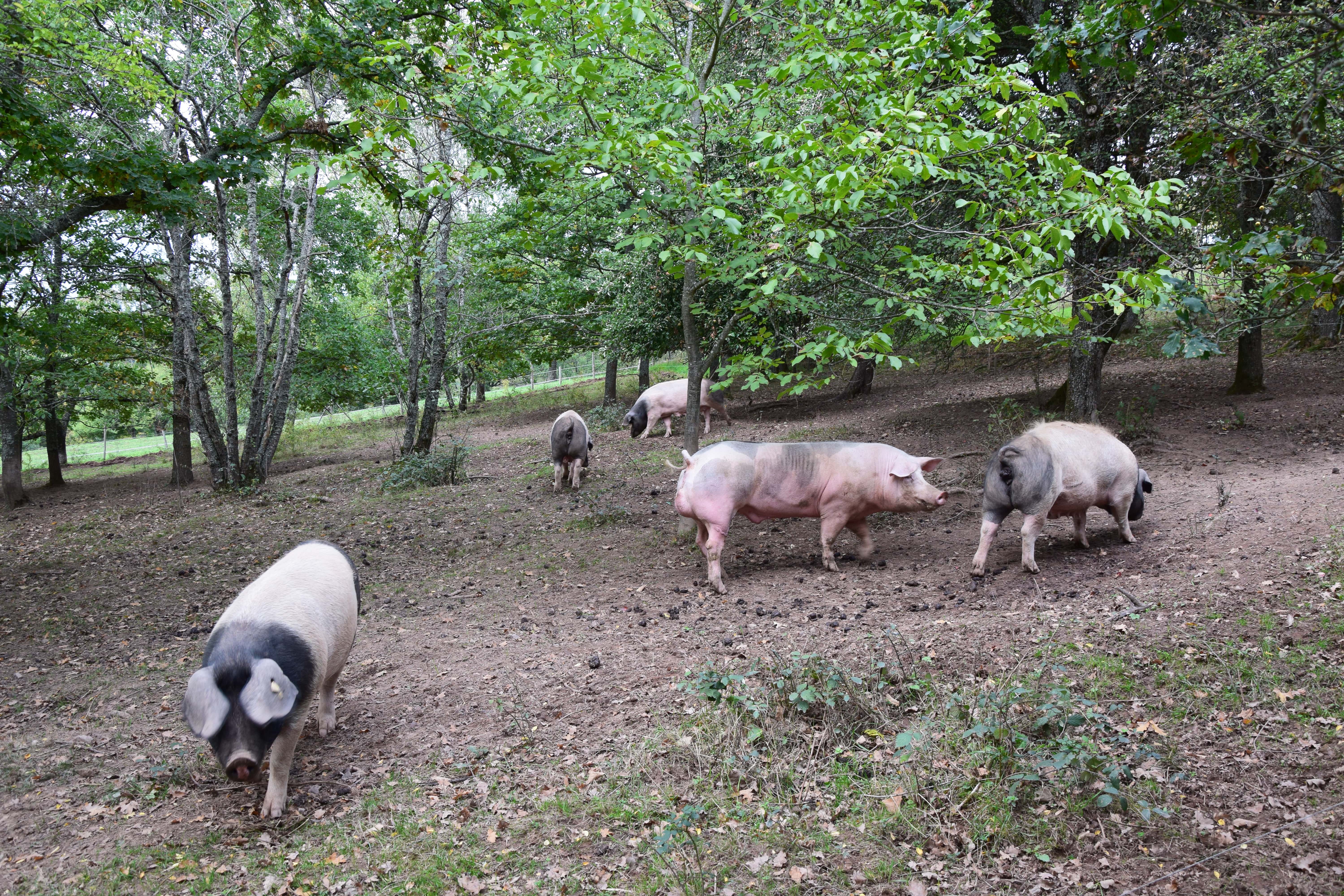 Les truies profitent des parcs arborés durant toute la belle saison et sont en porcherie uniquement pendant l'hiver et lors de la mise bas jusqu'au sevrage des porcelets. Une semaine avant la mise bas, les truies sont rentrées en box individuels que nous avons pensés pour permettre le bon déroulement de la mise bas tout en assurant la sécurité des porcelets et le bien-être de la mère.